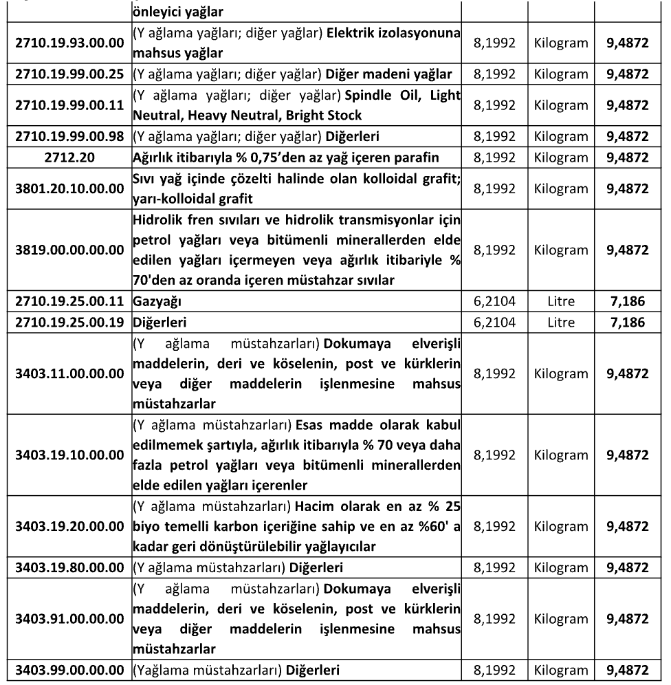 Bu doğrultuda, ÖTV Kanunu eki (I) sayılı listede yer alan petrol ürünlerine (akaryakıtlar, doğalgaz, LPG, biodizel, madeni yağlar vb.) ilişkin maktu ÖTV tutarları, 3 Temmuz 2025 tarihinden itibaren aşağıdaki şekilde yeniden belirlenmiştir:
